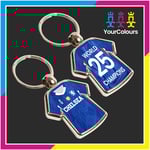 Show your colours wherever you go with this eye-catching keyring. The shirt keyring design is completely unique and only available at YourColours. Forged from silver plated metal, with high quality printed shirt design, it gives an appearance that stands out.