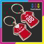 Show your colours wherever you go with this eye-catching keyring. The shirt keyring design is completely unique and only available at YourColours. Forged from silver plated metal, with high quality printed shirt design, it gives an appearance that stands out.